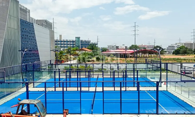 In the city of Luanda, Angola, the construction of 6 panoramic padel courts in accordance with the standards of the International Padel Federation was completed by our teams.