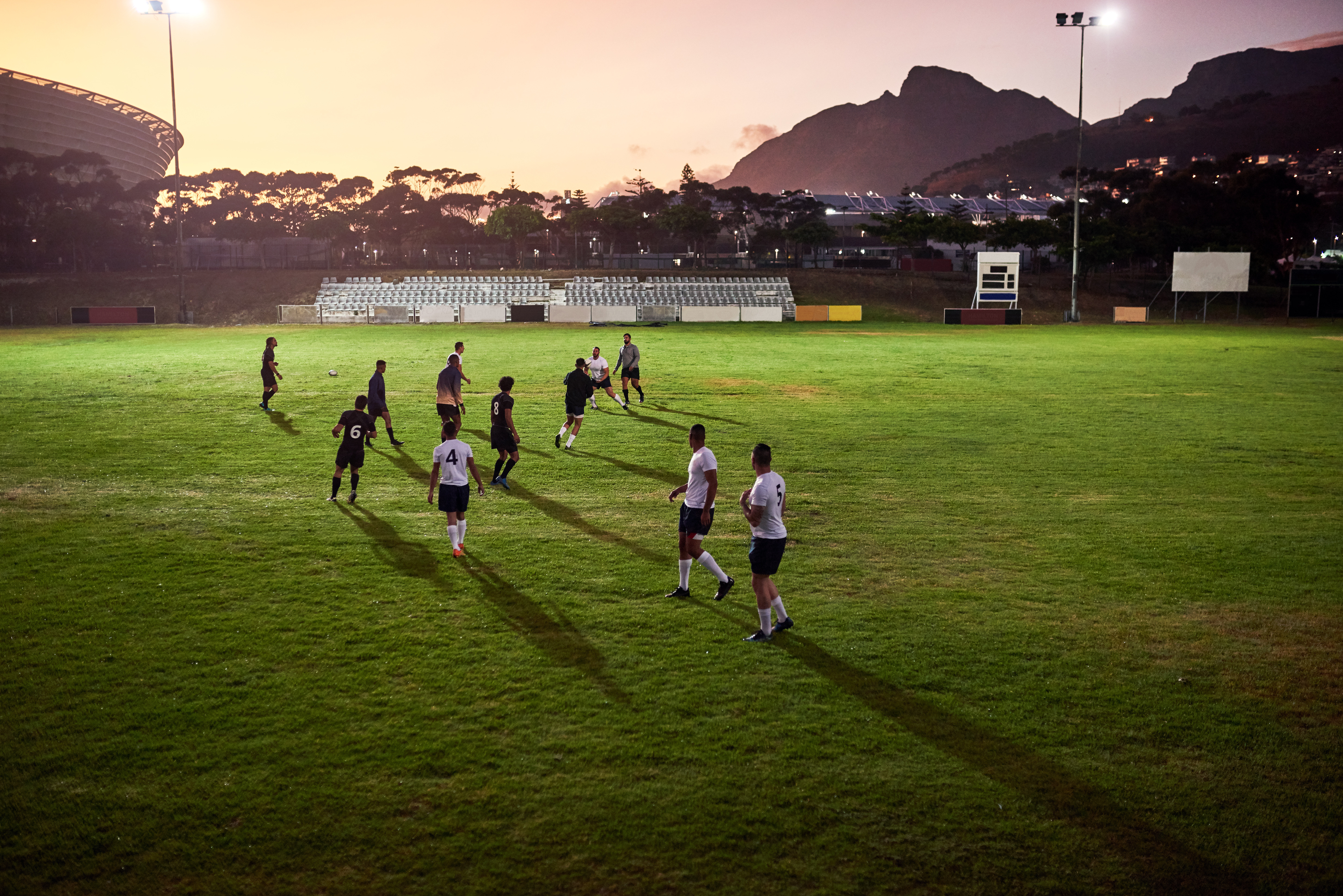 - The rugby field is equipped with reinforced natural grass to endure intense gameplay and maintain a consistent surface.